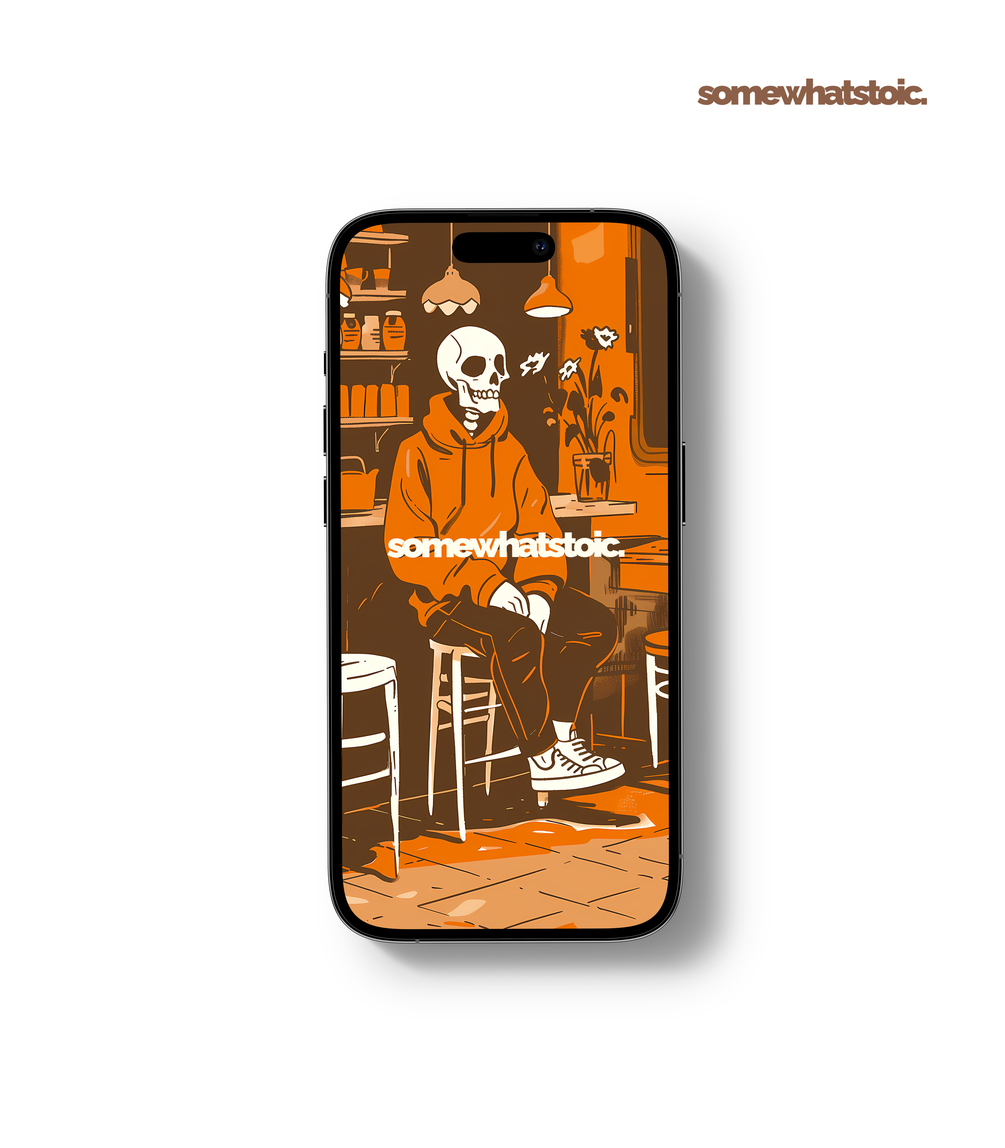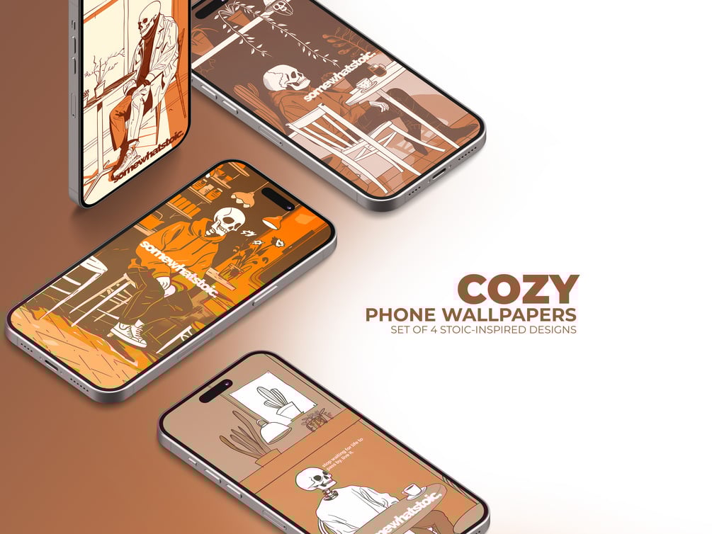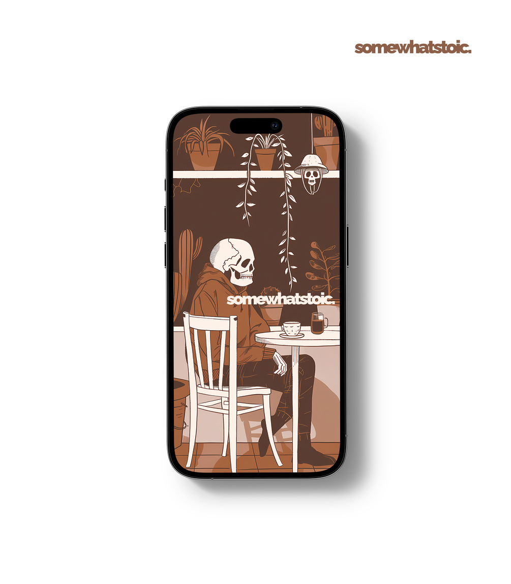 Cozy Coffee Art iPhone Wallpaper, Stoicism-Inspired Phone Digital Background, Brown iPhone Background, Trendy Boho Hipster Phone Wallpaper