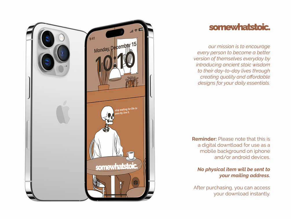 Improve your life by improving your iPhone wallpaper game with our set of phone wallpapers!! Make your iPhone background aesthetic nicer with these stoic-inspired designs. These digital phone wallpapers aren't just eye candy; they're also your daily hypeman for your self-improvement journey.Available as an ios wallpaper for every ios version or any phones. (and hey, we think these will look cooler as your iphone lockscreen or phone lockscreen.)